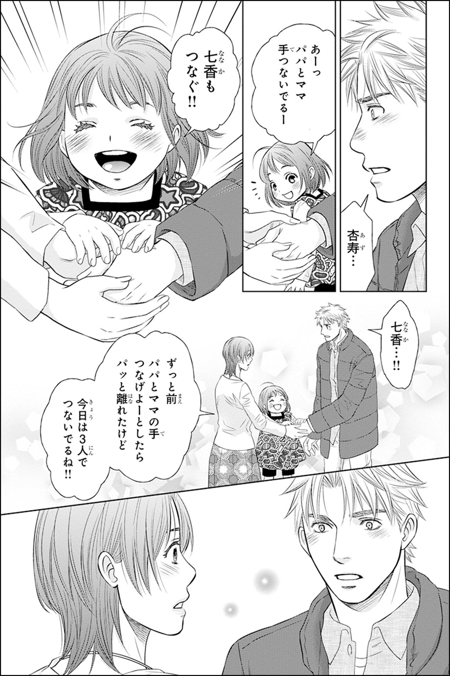 これは好きなシーンと言うか、印象に残っているシーンなのですが…里奈と純平がレストランで話している時に、里奈がおしぼりを丸めて作った「はいっピヨちゃん♡」のシーンは描いててイラっとしましたね~(笑)